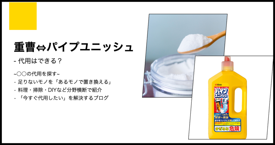 キッチンのシンクや浴室の排水口で発生するヌメリや軽微な詰まり。強力な塩素系クリーナー(パイプユニッシュ等)のストックが切れた際、重曹がその代役をどこまで務められるのか。代用パレット調査班は、アルカリによる油脂分解と、酸との反応による発泡メカニズムの観点から、重曹によるパイプ洗浄の再現性と実利を徹底調査しました。